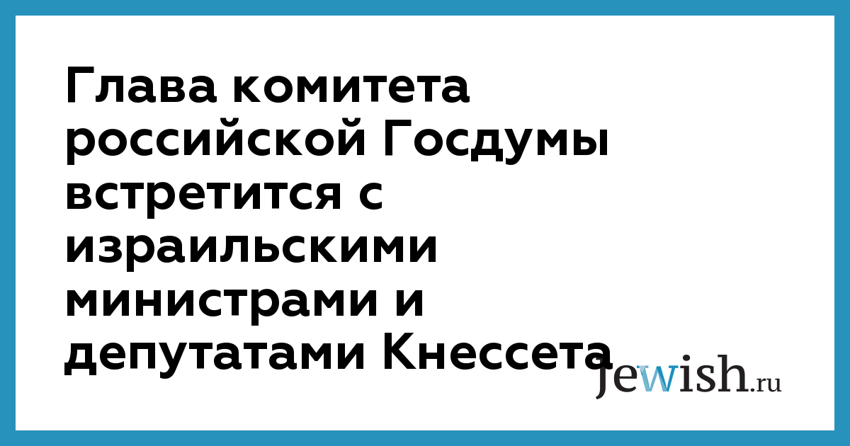 Глава комитета российской Госдумы встретится с израильскими министрами и депутатами Кнессета