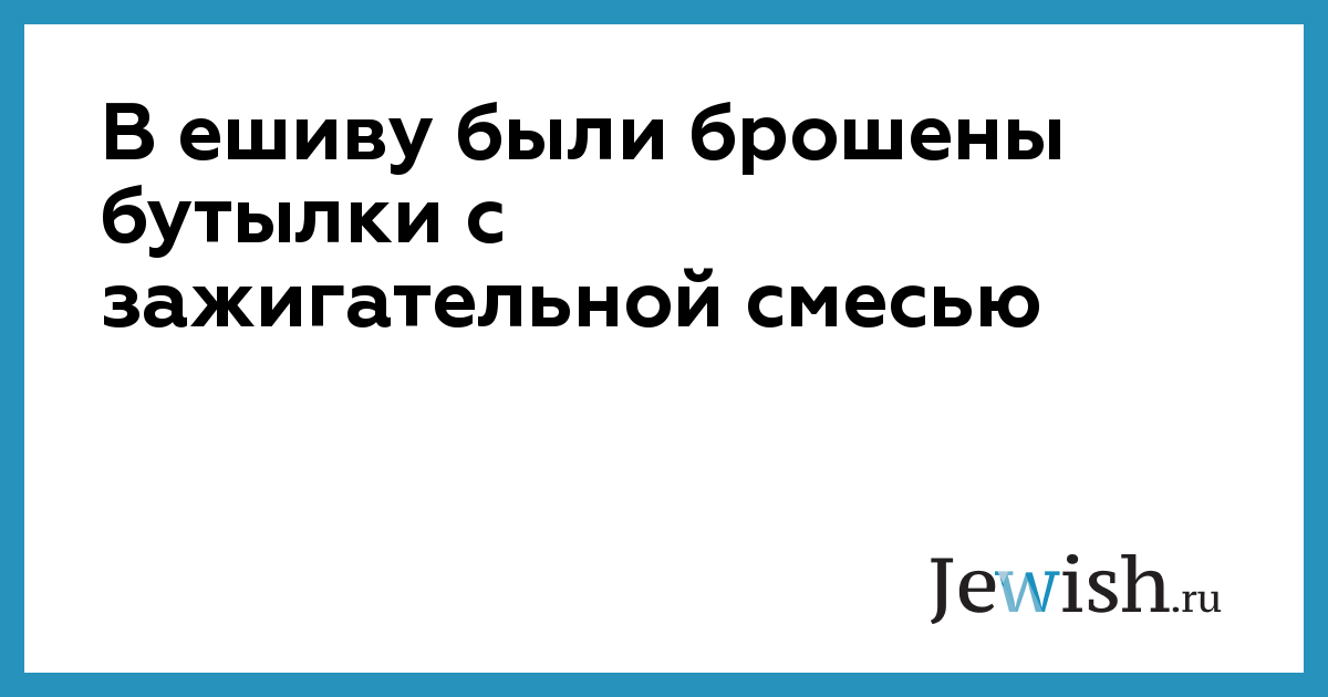 В ешиву были брошены бутылки с зажигательной смесью