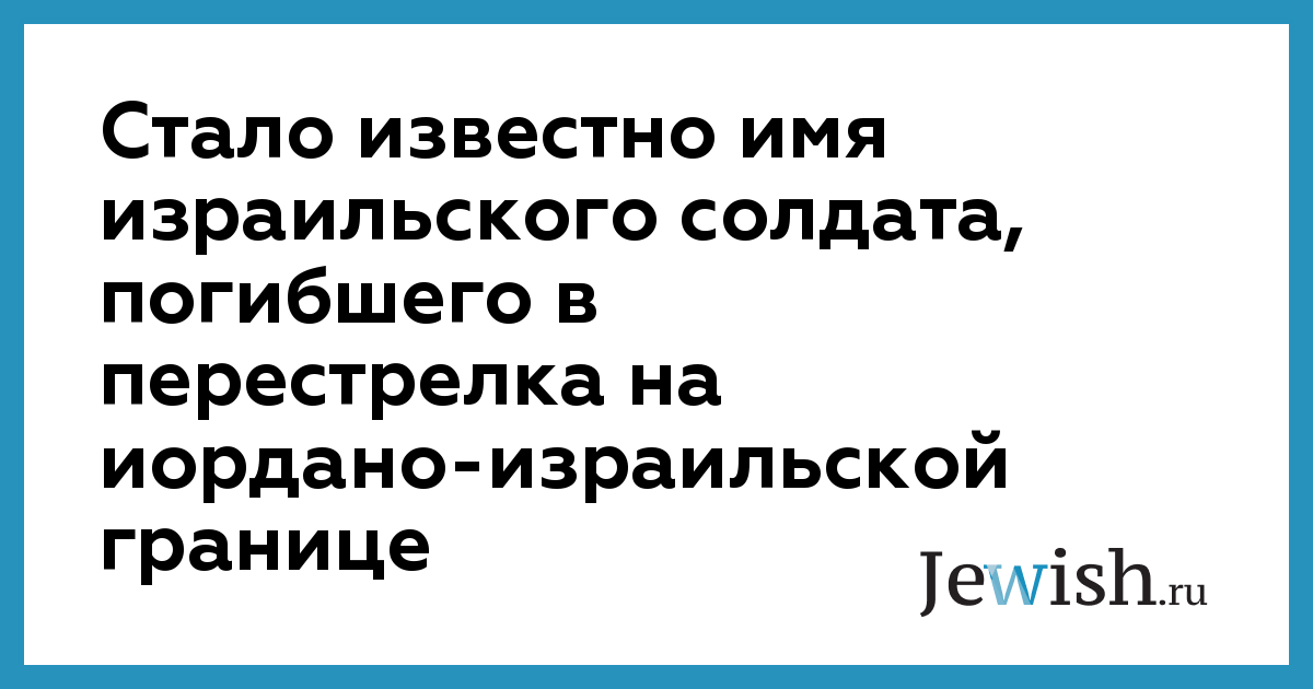 Стало известно имя израильского солдата, погибшего в перестрелка на иордано-израильской границе