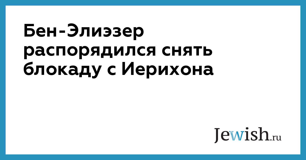 Бен-Элиэзер распорядился снять блокаду с Иерихона