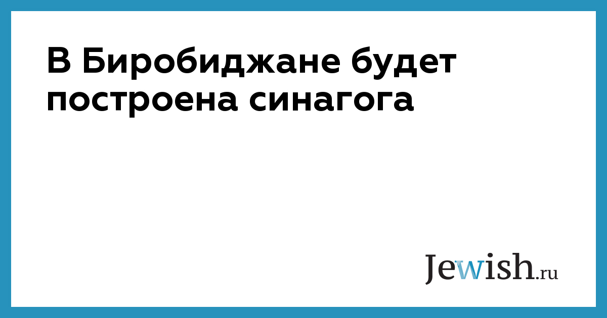 В Биробиджане будет построена синагога