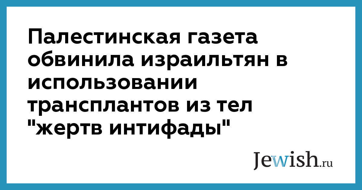 Палестинская газета обвинила израильтян в использовании трансплантов из тел "жертв интифады"