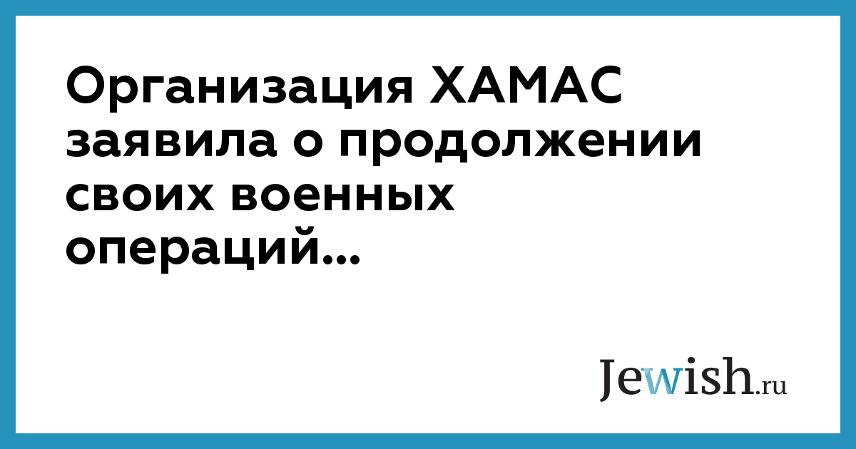 Организация ХАМАС заявила о продолжении своих военных операций...