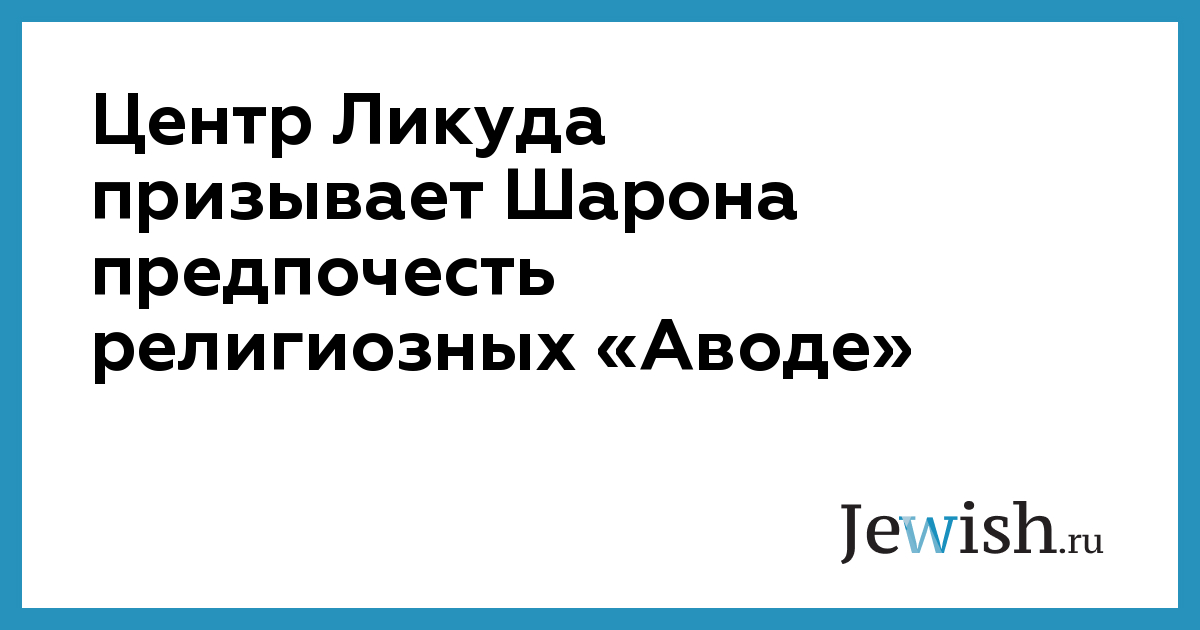 Центр Ликуда призывает Шарона предпочесть религиозных «Аводе»