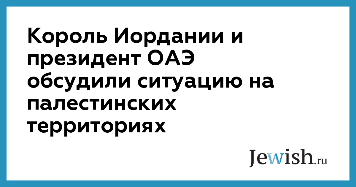 Король Иордании и президент ОАЭ обсудили ситуацию на палестинских территориях