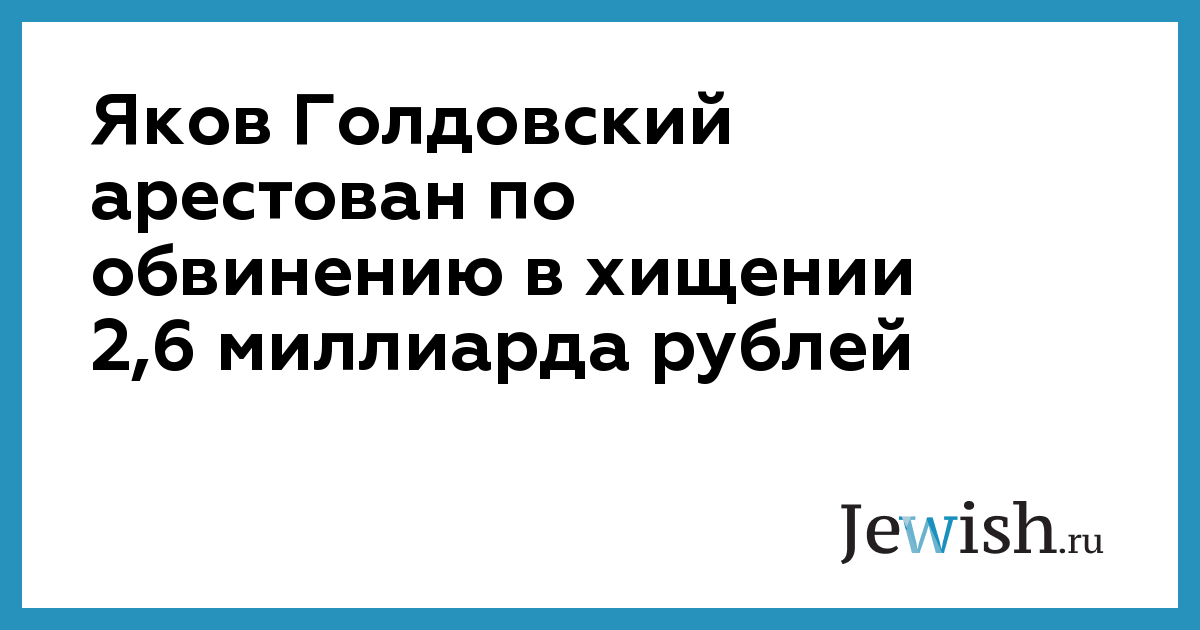 Яков Голдовский арестован по обвинению в хищении 2,6 миллиарда рублей