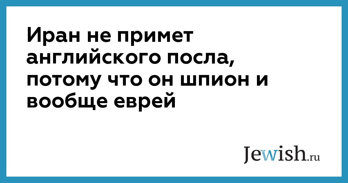Иран не примет английского посла, потому что он шпион и вообще еврей