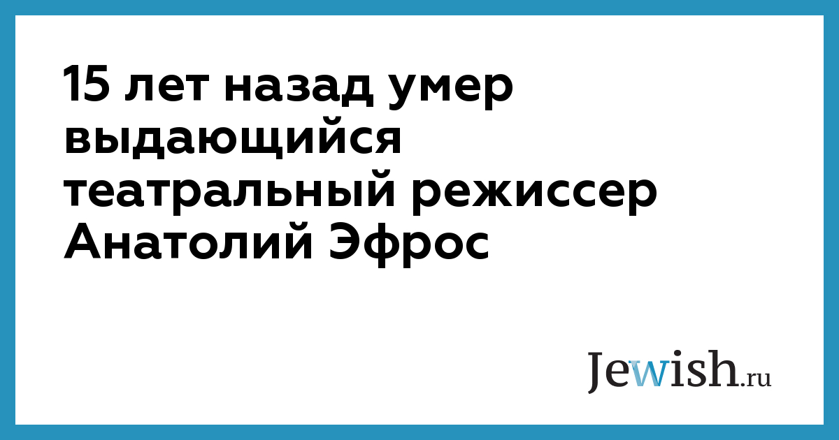 15 лет назад умер выдающийся театральный режиссер Анатолий Эфрос