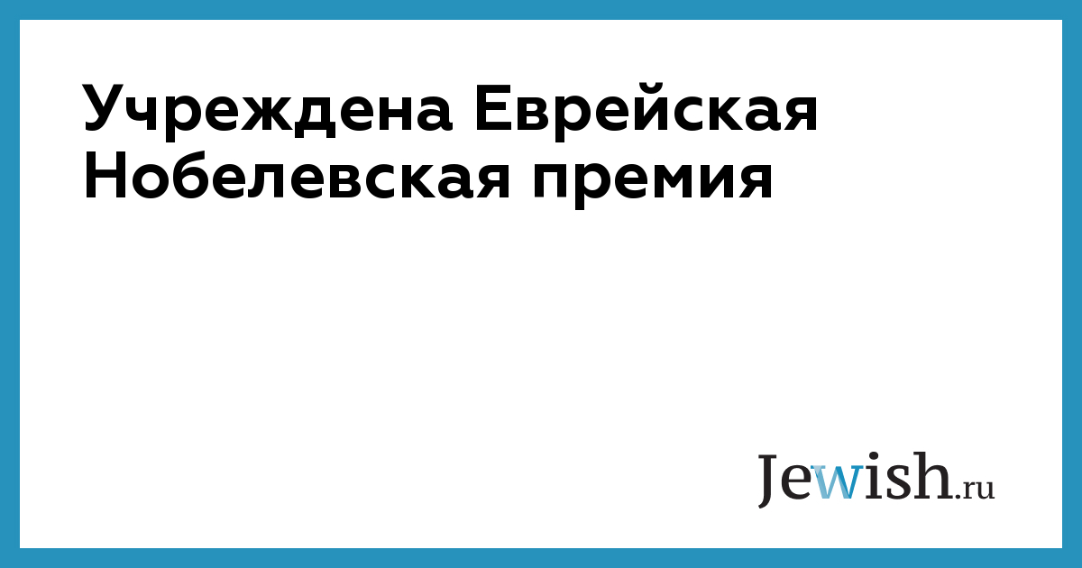 Учреждена Еврейская Нобелевская премия