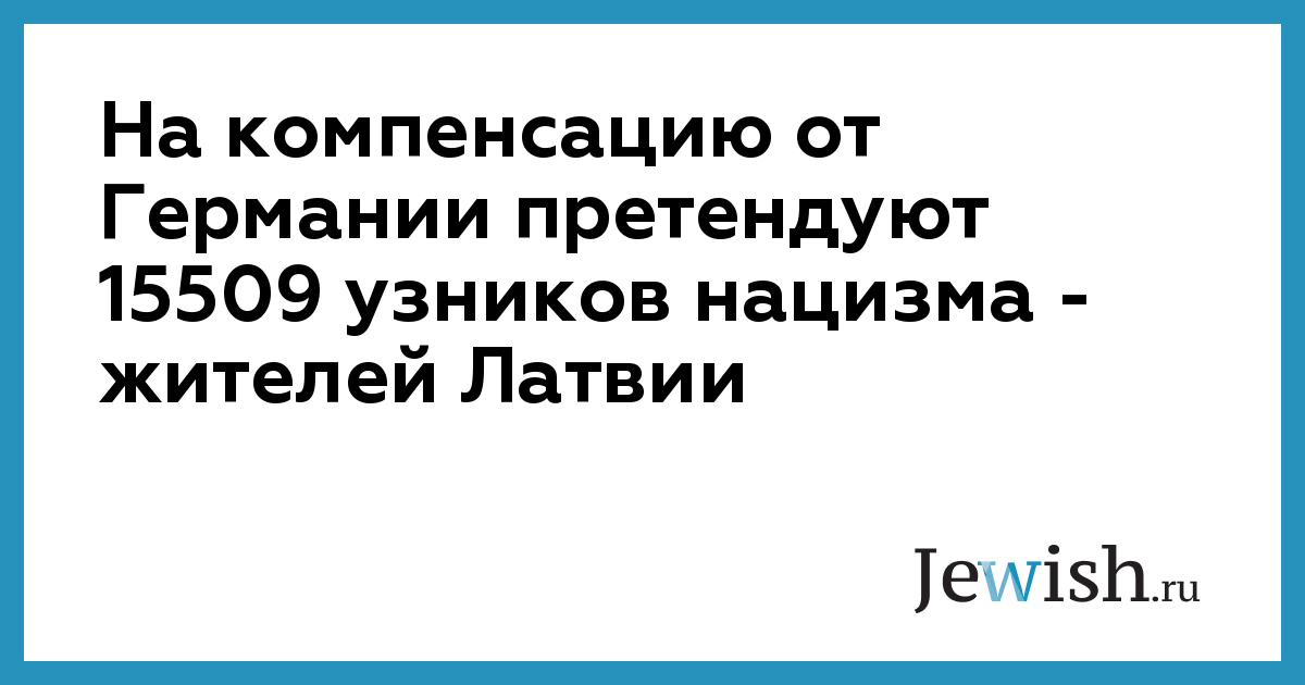Заявления о выплате компенсаций за принудительные работы в Германии во время Второй мировой войны подали 15 509 жителей Латвии, сообщила руководитель отдела общественных отношений Государственного агентства социального страхования (ГАСС) Эдите Олупе. Кроме этих 15 509 заявлений по меньшей мере 1500 жителей Латвии подали заявления на получение компенсаций от немецкого фонда "Память, ответственность и будущее" непосредственно в российский фонд "Понимание и примирение". Как сообщалось, фонд "Память, ответственность и будущее" приступил в выплате компенсаций жертвам нацизма в Латвии в конце декабря прошлого года. До 31 декабря 2001 года можно было подавать заявления на получение этих компенсаций. Согласно закону компенсации могут требовать сами пострадавшие или в случае их смерти после 15 февраля 1999 года в приоритетной последовательности их супруги, дети, внуки, братья и сестры, наследники по завещанию. Каждый из подавших ходатайства может претендовать на компенсацию в размере до 15 000 немецких марок, в зависимости от того, был ли пострадавший в концентрационном лагере или занят на принудительных работах.