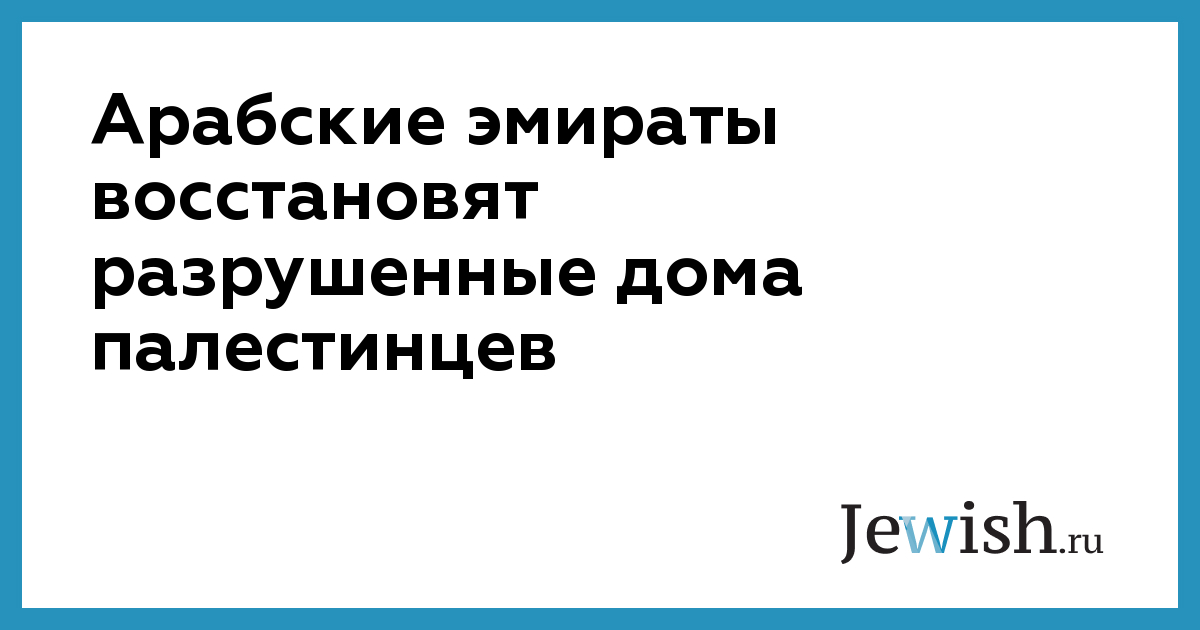 Арабские эмираты восстановят разрушенные дома палестинцев