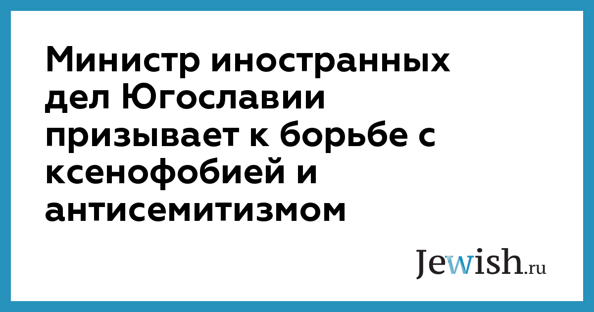 Министр иностранных дел Югославии призывает к борьбе с ксенофобией и антисемитизмом
