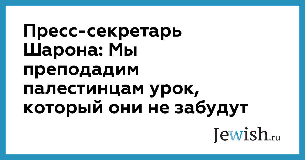 Пресс-секретарь Шарона: Мы преподадим палестинцам урок, который они не забудут