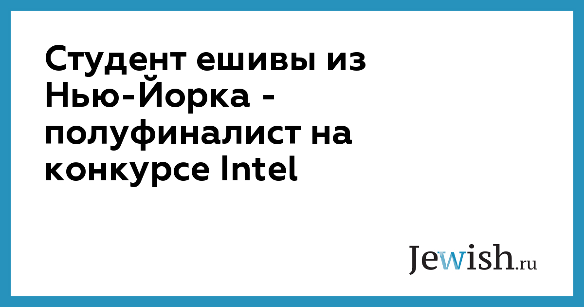 Студент ешивы из Нью-Йорка — полуфиналист на конкурсе Intel