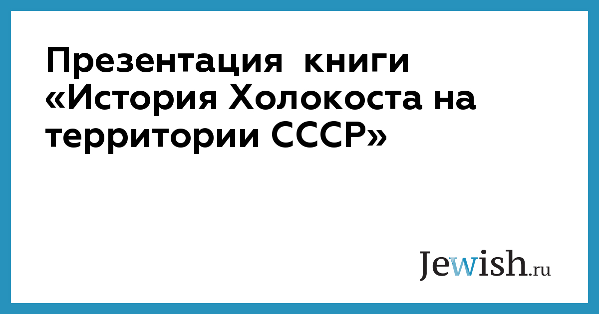 Презентация книги «История Холокоста на территории СССР»