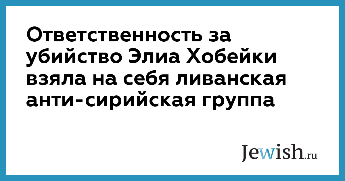 Ответственность за убийство Элиа Хобейки взяла на себя ливанская анти-сирийская группа