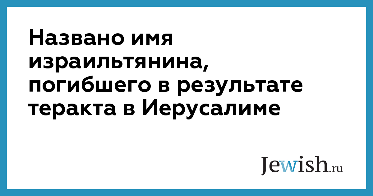 Названо имя израильтянина, погибшего в результате теракта в Иерусалиме