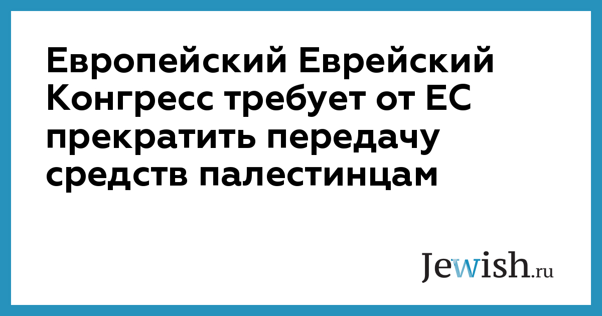 Европейский Еврейский Конгресс требует от ЕС прекратить передачу средств палестинцам