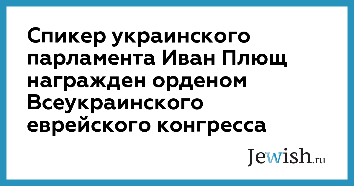 Спикер украинского парламента Иван Плющ награжден орденом Всеукраинского еврейского конгресса