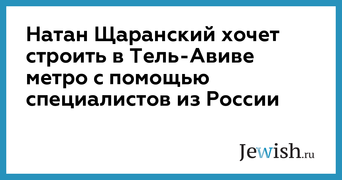 Натан Щаранский хочет строить в Тель-Авиве метро с помощью специалистов из России