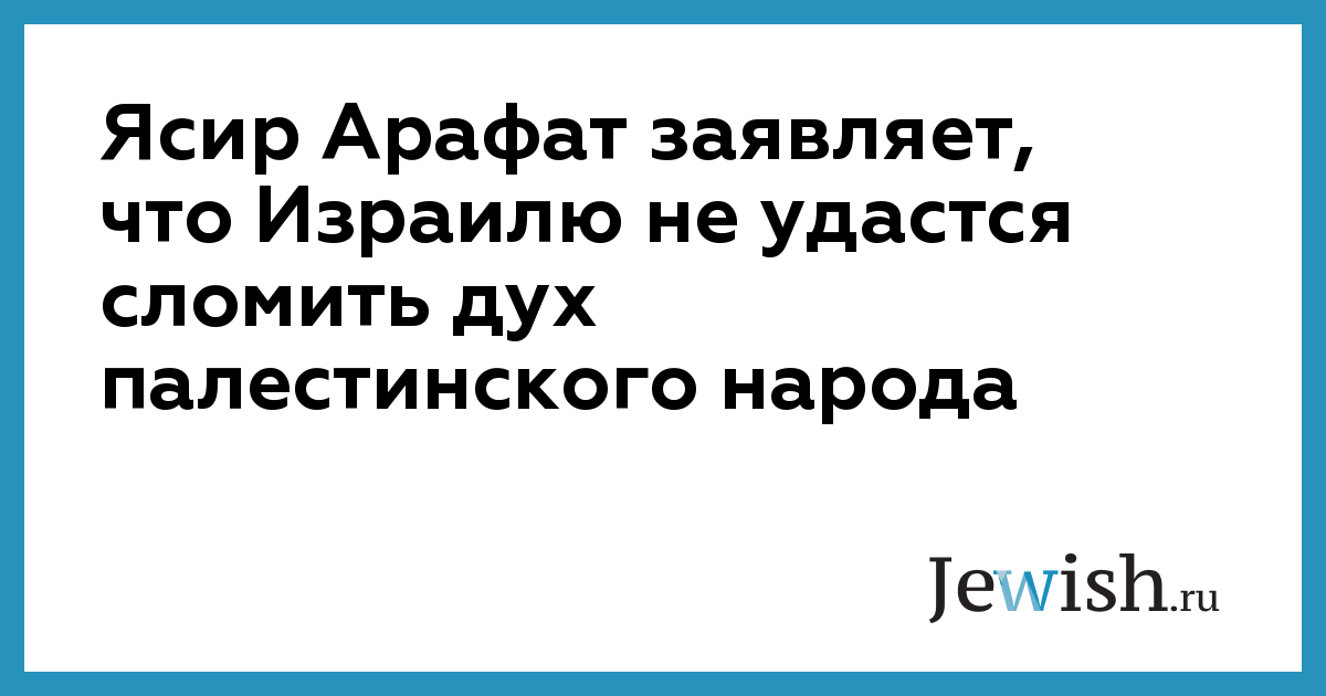 Ясир Арафат заявляет, что Израилю не удастся сломить дух палестинского народа
