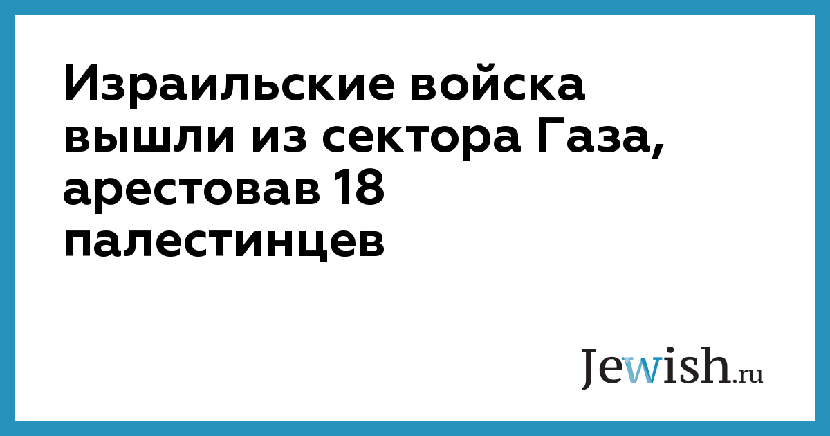 Израильские войска вышли из сектора Газа, арестовав 18 палестинцев