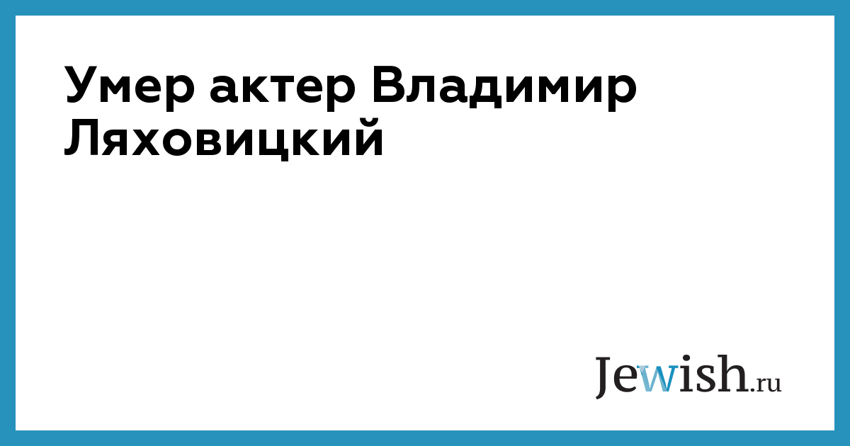В Германии скончался известный эстрадный актер, многолетний партнер Аркадия Райкина, народный артист России Владимир (Вульф) Ляховицкий. Ему было 76 лет. Владимир Наумович Ляховицкий уехал в Германию к дочери более года назад, там он проходил курс лечения, но тяжелая болезнь не отступала. Ляховицкий начинал как артист оперетты, выступал на сцене Ивановского театра музкомедии. Играл роли самого разного плана: героические, характерные и комедийные. Там его увидел Аркадий Райкин и пригласил в Ленинград к себе в труппу. Со временем Ляховицкий занял ведущее положение в этом театре, с Райкиным он играл чаще других. Герои Ляховицкого — всевозможные бюрократы, хапуги, глупцы или же люди маленькие, забитые и нерешительные. Он стал первым исполнителем широкоизвестной миниатюры Михаила Жванецкого "Авас". Владимир Ляховицкий снимался в телевизионных и музыкальных фильмах: "Летучая мышь", "Люди и манекены", "Трое в лодке, не считая собаки", "Третий не лишний", "Курочка Ряба", "Страсти в ателье "Шах" и других. Последние годы Ляховицкий выступал на эстраде с братом Райкина – Максимом Максимовым, участвовал в концертах "Юморина" в Театре киноактера, снимался в видеоклипах.