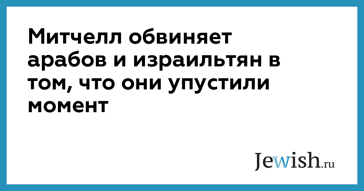 Митчелл обвиняет арабов и израильтян в том, что они упустили момент
