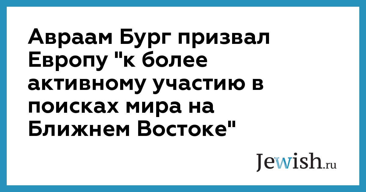 Авраам Бург призвал Европу "к более активному участию в поисках мира на Ближнем Востоке"