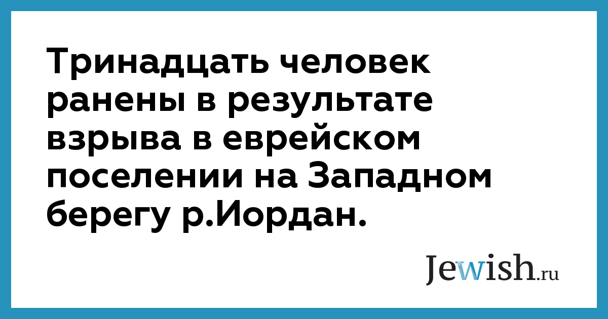 Тринадцать человек ранены в результате взрыва в еврейском поселении на Западном берегу р.Иордан.