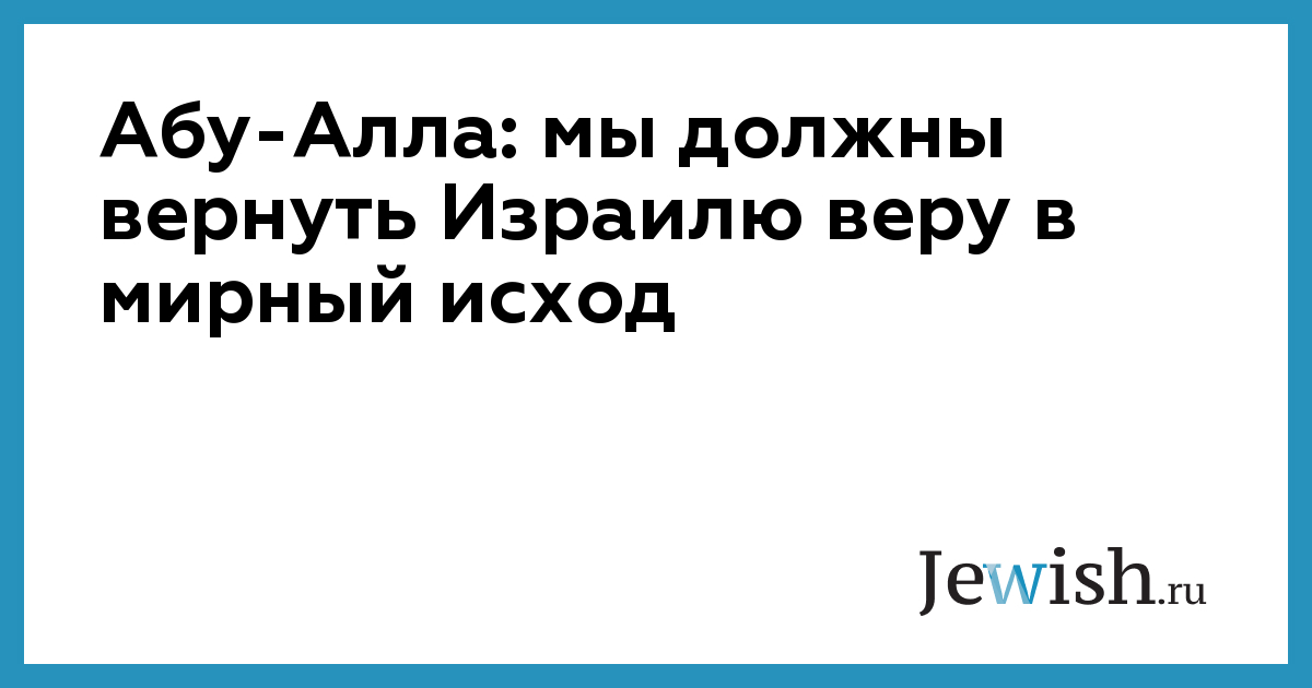 Абу-Алла: мы должны вернуть Израилю веру в мирный исход