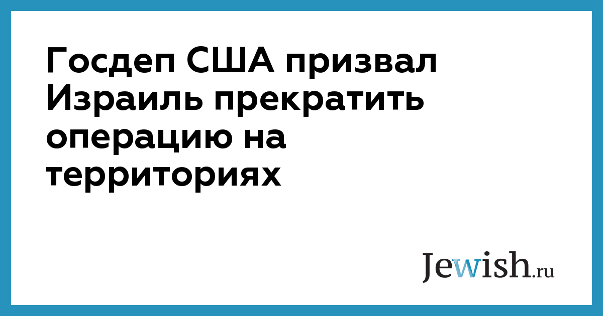 Госдеп США призвал Израиль прекратить операцию на территориях