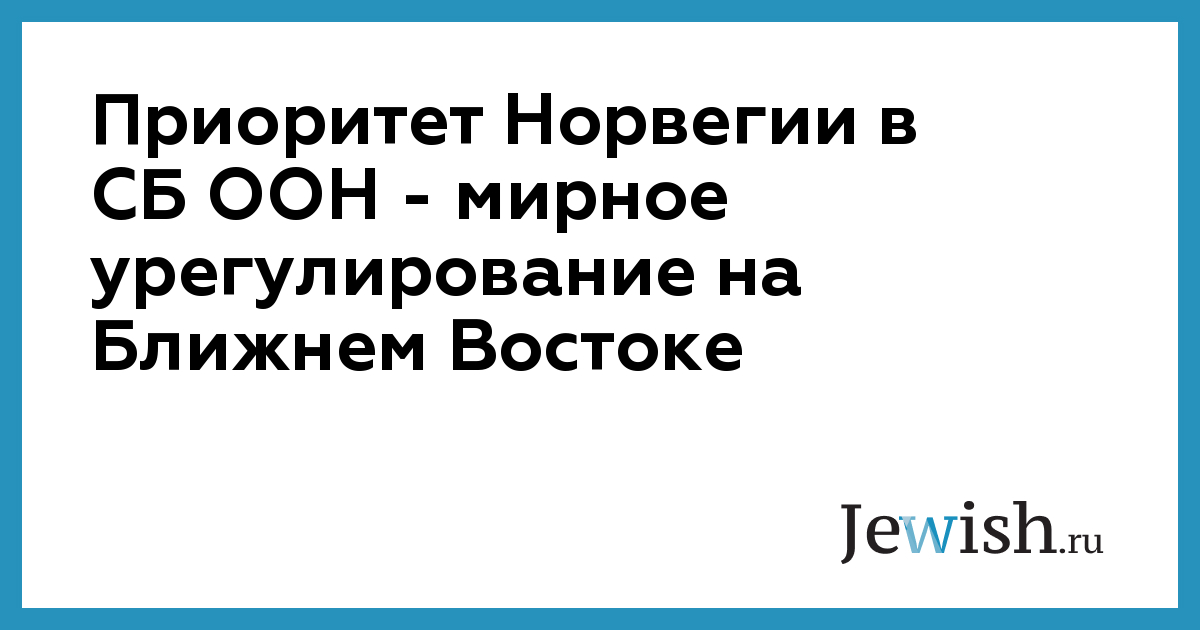 Приоритет Норвегии в СБ ООН — мирное урегулирование на Ближнем Востоке