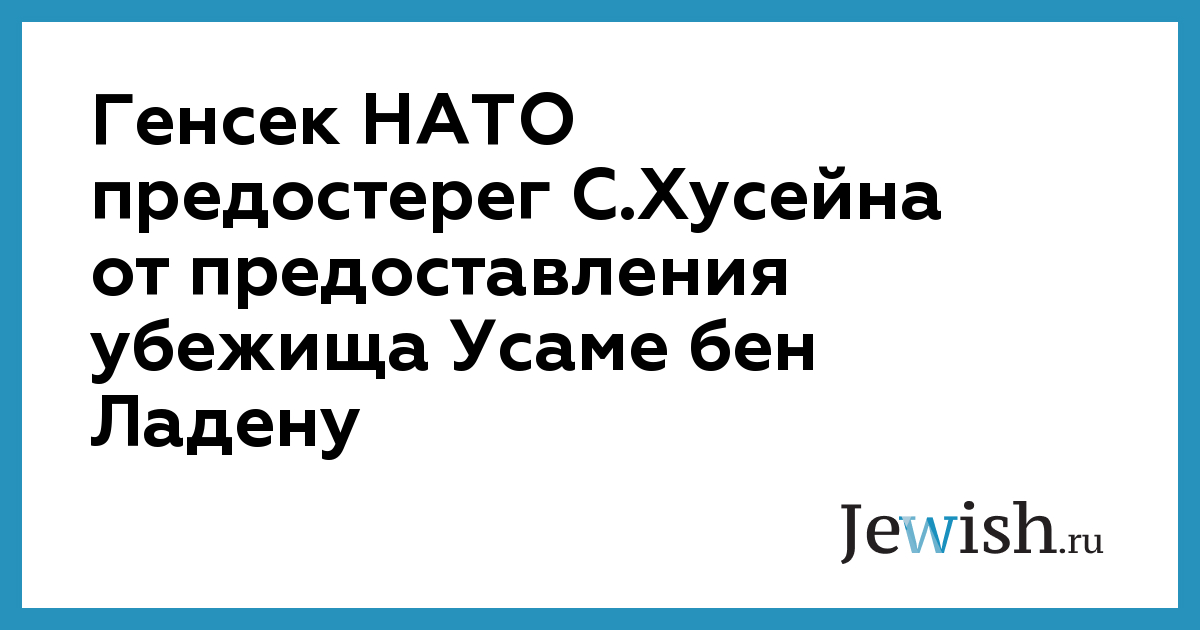 Генсек НАТО предостерег С.Хусейна от предоставления убежища Усаме бен Ладену