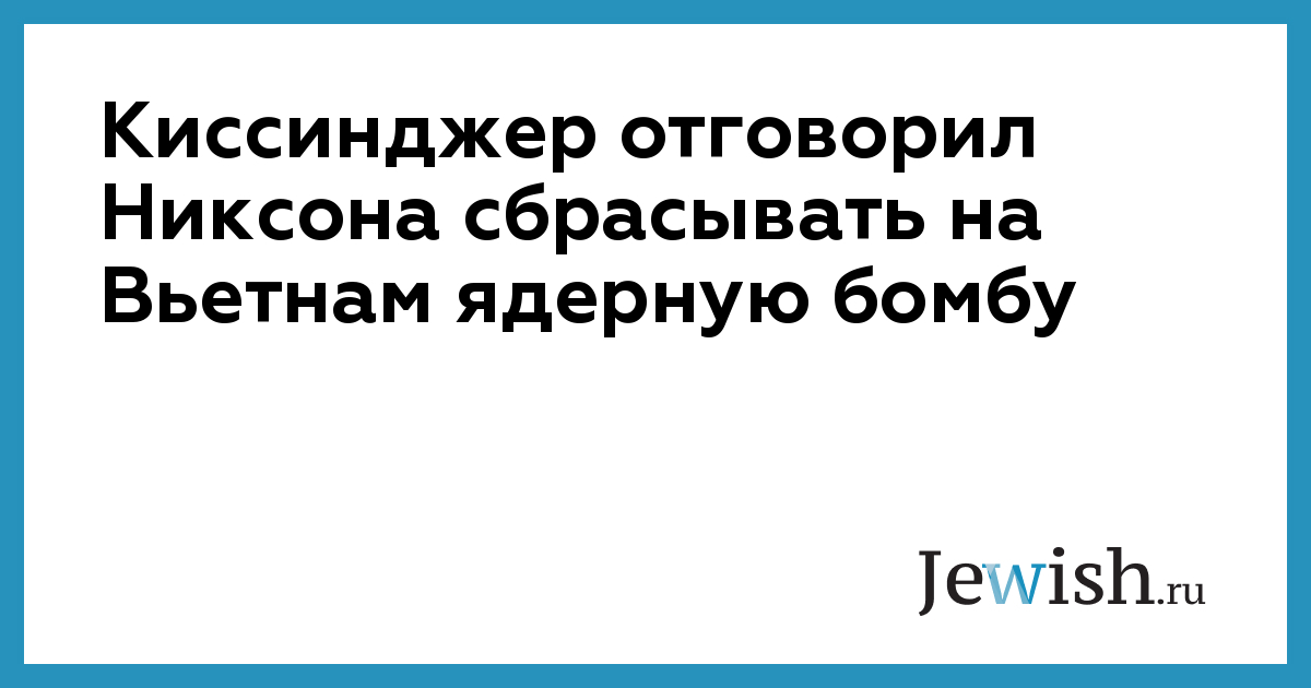 "Я бы использовал атомную бомбу", — сказал Никсон таким тоном, будто бы речь шла о чем-то вполне обычном. "Я думаю, это будет слишком", — осторожно ответил Киссинджер. "Это тебя беспокоит? — резко спросил своего советника Никсон. — Я просто хочу, чтобы ты мыслил масштабно". В июне того же года в разговоре со своим советником Чарльзом Колсоном о Вьетнаме Никсон сказал, что хочет "проредить проклятое место".