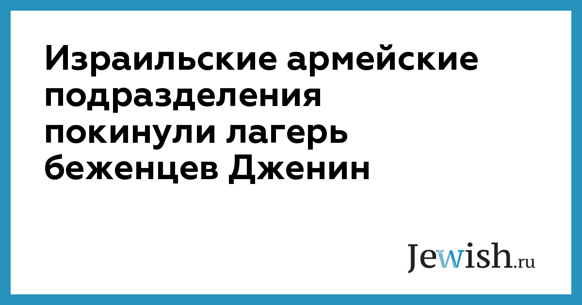Израильские армейские подразделения покинули лагерь беженцев Дженин