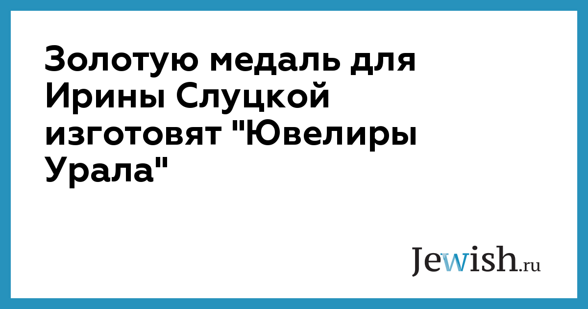 Золотую медаль для Ирины Слуцкой изготовят "Ювелиры Урала"