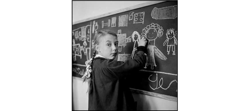 Уже через год к Сеймуру, вице-президенту агентства Magnum Photos, обратился ЮНИСЕФ с просьбой сделать фоторепортажи о послевоенном детстве. Сеймур купил автомобиль и целый год ездил по Греции, Италии, Австрии, Венгрии и Польше, создавая удивительно эмоциональную хронику. «Куда бы я ни шел, я видел детей, мечтающих о мирной жизни, но находившихся в руинах жизни родителей», – вспоминал Сеймур. Он отснял 257 кассет пленки – пропустил через себя сотни трагедий осиротевших, бездомных, покалеченных детей. Одной из самых ярких фотографий стал портрет польской девочки Терешки из школы для детей с психическими отклонениями – на классной доске она пыталась нарисовать свой дом, но получился клубок спутанных линий.