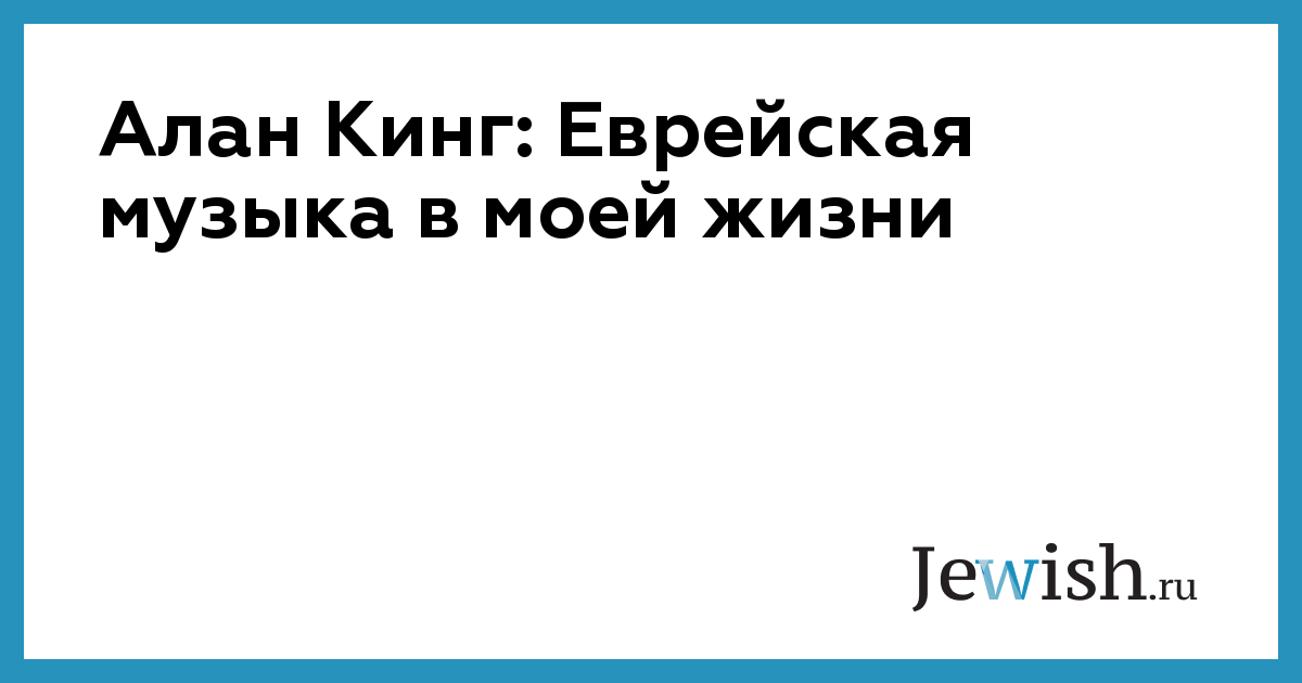 Алан Кинг: Еврейская музыка в моей жизни