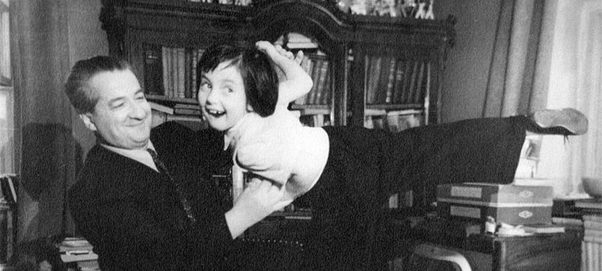 Дочь Катя у отца в кабинете. Москва, Беговая улица, середина 1950-х годов (архив семьи И.Л. Андроникова)