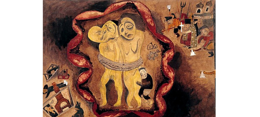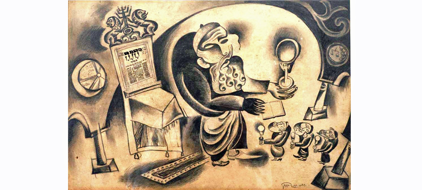 На одном рисунке – умирает отец, изрубленный погромщиками, на другом – молится в полуразрушенной синагоге мужчина, набросивший на себя изодранный талес. Еще одна работа – женщина, склонившаяся над холодным тельцем зверски убитого ребенка. Она не может смириться с его смертью и нежно покачивает его, что-то напевая. Эмоциональность, с которой переданы сюжеты этой серии, просто поражает. Впервые в Берлине были тогда представлены публике и репродукции, включенные в альбом «Местечко. Мой разрушенный дом. Воспоминания». Даже забавные, на первый взгляд, сюжеты и сцены из жизни еврейской провинции были проникнуты печалью, ведь изображенного на них мира уже не было. В альбоме словно чувствуется стремление художника сохранить приметы уходящей жизни. Альбом завершал текст на идише за подписью художника: «Так мне сказал наш ребе: “Не надо печалиться, мой мальчик. Грустить – все равно что делать кому-то зло. А если ты весел, то и мир вокруг полон веселья”». Интересно, что все рисунки в альбоме датированы 1917 годом. Но впервые представлены они были только в Берлине. На родине за все предшествующие годы Рыбак эти работы не выставлял, как не выставлял их там и в дальнейшем.