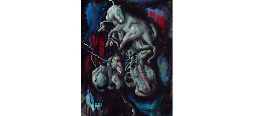 Вот и на юбилейной выставке в Одессе, прошедшей в Музее западного и восточного искусства в честь 90-летия со дня рождения Юлия Гальперина, представлены, в основном, его акварельные работы. Акварель на бумаге, на холсте и даже на дереве с сучками – доске, которую мастер не донес до мусорки. Еврейские мудрецы и одесские грации, вечный город и вечные вопросы, клейзмеры и джазмены, циркачи и скрипачи, картежники и апостолы, и конечно же, лошади.
