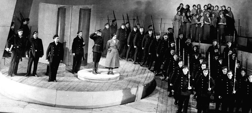 В 1936 году Таиров поставил лубочную оперу-буфф «Богатыри» на либретто Демьяна Бедного, который уже тогда из друзей Сталина перекочевал в категорию «морально разложившихся». Режиссера – уже заслуженного и народного артиста РСФСР – начали планомерно заглушать. В 1937-м в здание Камерного подселили Реалистический театр режиссера Охлопкова. Пришелец был учеником Мейерхольда, давнего оппонента Таирова, но оплеуху пришлось пережить. В 1940 году Таиров выпустил новую яркую постановку «Мадам Бовари» – она не дышала любовью к СССР, но и скандальной не была. Доверие могло вернуться, но началась война – и все поломала. Камерный театр эвакуировали сначала в казахский Балхаш, потом в Барнаул. В Москву театр вернулся в 1946 году – и все в городе было по-новому.