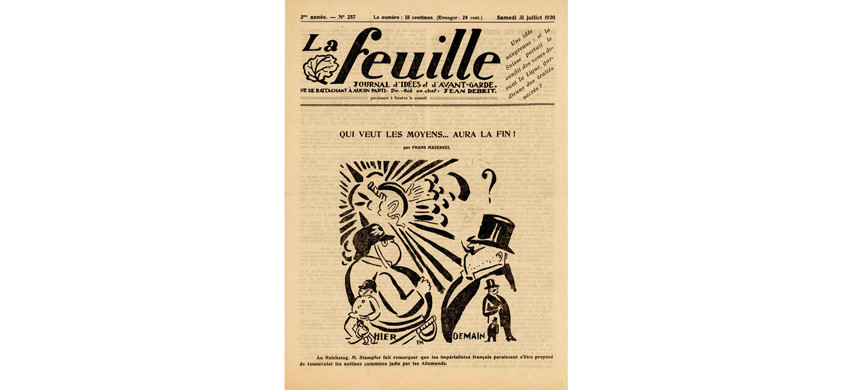 Начало Первой мировой застало художника в Бретани. Он собирался вернуться в Бельгию, но в итоге бежал со своей будущей женой Полиной в нейтральную Швейцарию. В Женеве он присоединился к группе художников и писателей под началом Ромена Роллана. Весь 1916 год он делал рисунки для журнала Les Tablettes, а затем стал сотрудничать с женевской газетой La Feuille – за следующие несколько лет Мазерель выполнил для первой полосы этого издания тысячу рисунков! Все они были направлены против войны, бедности и социальной несправедливости. Художник сам придумывал к ним подписи – одна красноречивей и язвительней другой. Так, под рисунком с разорванным бомбой солдатом было написано: «Новейшая пластика».