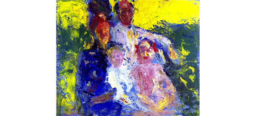 В кругу Шёнберга Герстлю было интересно: его окружала целая плеяда выдающихся композиторов, таких как Альбан Берг, Антон фон Веберн и Александр фон Цемлинский – брат жены Шёнберга Матильды, живший в соседней с ними квартире. Герстль стал учителем рисования сначала для Матильды, а потом и для Арнольда, который оказался очень способным учеником и взамен обучал художника игре на фортепьяно. Все эти годы они проводили много времени вместе – два лета подряд по приглашению Шёнбергов Герстль даже отдыхал с ними на курорте Гмунден на берегах альпийского озера Траунзее. За это время он написал много портретов семьи композитора и его друзей. Один из самых удачных создан в нарочито небрежной манере. На нем четыре пятна, лиц не видно, но мы сразу же узнаем высокую прическу Матильды, лысину Шёнберга, обрамленную двумя густыми «щетками» волос по краям, светлые головы детей.