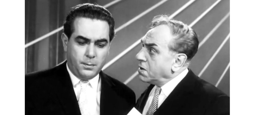 «Скажите, почему у нас в последнее время блямблямчики не вегереснируются?» Сейчас этот вопрос звучит то ли как пароль из фильма про шпионов, то ли как цитата из фантастического романа. Однако в конце 1960-х он вызывал хохот и полное понимание у большинства советских телезрителей. Прозвучал он в новогоднем «Голубом огоньке» в миниатюре, высмеивающей слишком беззубую и абстрактную сатиру. Исполняли номер популярные эстрадные артисты Лев Миров и Марк Новицкий, постоянные ведущие «Огонька» на протяжении почти двух десятилетий.
