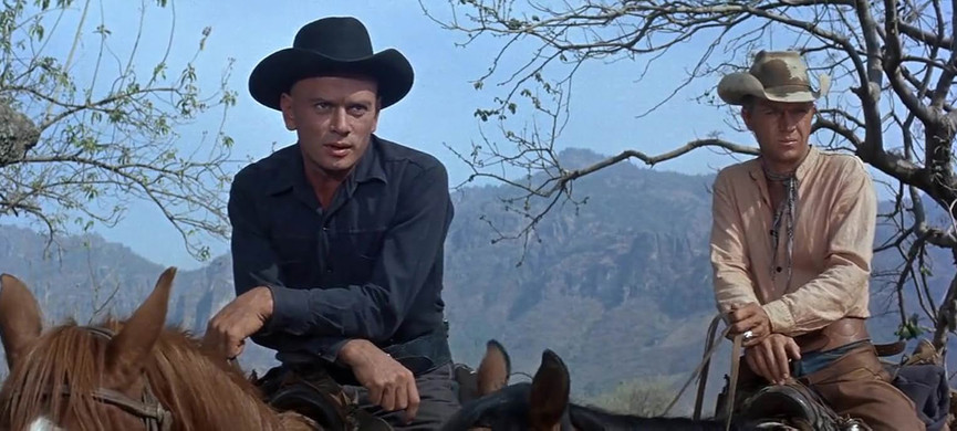 В 1959 году начались съемки «Великолепной семерки». Распространено убеждение, что права на ремейк «Семи самураев» приобрел у Куросавы именно Бриннер, но на самом деле это сделал продюсер Лу Морхайм. Бриннер перекупил их у Морхайма, чтобы использовать в качестве козыря. Он продал их студии Mirisch Co. с условием, что сыграет в картине главную роль. На съемках, проходивших в Мексике, все актеры жили в обычных вагончиках, за исключением Бриннера. Для главной звезды соорудили роскошный павильон с пальмами, куда самолетами доставляли вино из Парижа и стейки из Техаса.
