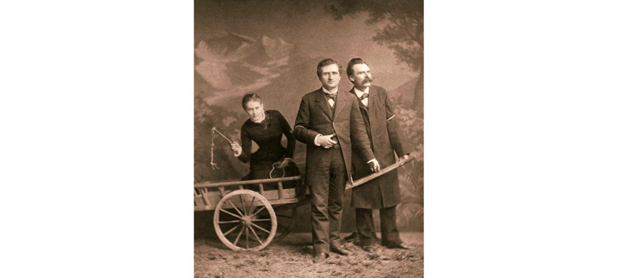 «Женщина погоняла мужчин кнутом!» – рассказывал потом шокированный фотограф. В тот летний день 1882 года к нему в ателье в Риме пришли трое, четко знавшие, какое фото они хотят получить: мужчины встали в упряжку, а женщина сделала вид, что погоняет их из повозки кнутом. Роль коней исполнили два известных философа – Фридрих Ницше и его друг Пауль Рэ. Возницей же была Лу Саломе.