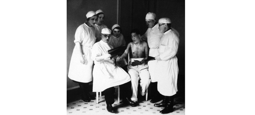 Пока ученики, движимые надеждой помочь Богоразу, ставили опыты на собаках, сам он был занят изучением совсем другого. Еще в 1910 году Богораз провел операцию трехлетнему ребенку, у которого в результате ожоговой травмы половой член оказался прикреплен к коже живота, на поверхность которого и происходило мочеиспускание. Опуская подробности, отметим, что малыш после хирургического вмешательства был избавлен от дефекта. А в 1936-м в клинику был доставлен 23-летний пациент, который имел неосторожность совершить супружескую измену и поплатился за это органом, ее совершавшим. Как следовало из истории болезни, жена отрезала его член бритвой «по самый mons pubis».