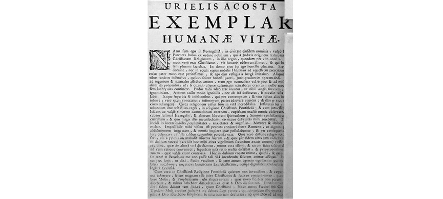 Свое возмущение Акоста выплеснул в 1616 году, составив десяток тезисов, критикующих раввинистический иудаизм. Он протестовал против «установления о молитвенных ремнях или тесьмах, против способа, которым производится обрезание, против установления восьми дней пасхи вместо семи, против замены принципа “око за око, зуб за зуб” денежными штрафами» и прочего, что, на его взгляд, не соответствовало предписанному Моисеем. Свои выводы он отправил из Гамбурга, где находился по рабочим делам, не в Амстердам, а сразу в Венецию: еврейская община этого города имела весомый авторитет в международных кругах. Но там его не поняли. Раввин венецианской общины Леон Дамодена отправил письмо «начальникам святой общины в Гамбурге» с предупреждением, которое автоматически становилось отлучением для Акосты, если тот не одумается. Несмотря на угрозы, бунтарь свой курс не изменил. «Я узнал, что порядки иудеев нисколько не соответствуют предписаниям Моисея. При этом они никоим образом не могли потерпеть, чтобы я отступал от них даже в мелочах, и требовали, чтобы я во всем шел по их следам. Мало того, они угрожали мне полным исключением из общины и полным отлучением… Я решил лучше все перенести, но остаться при своем мнении. И так был отлучен ими от всякого общения», – писал Акоста много позже в своей короткой биографии «Пример человеческой жизни».